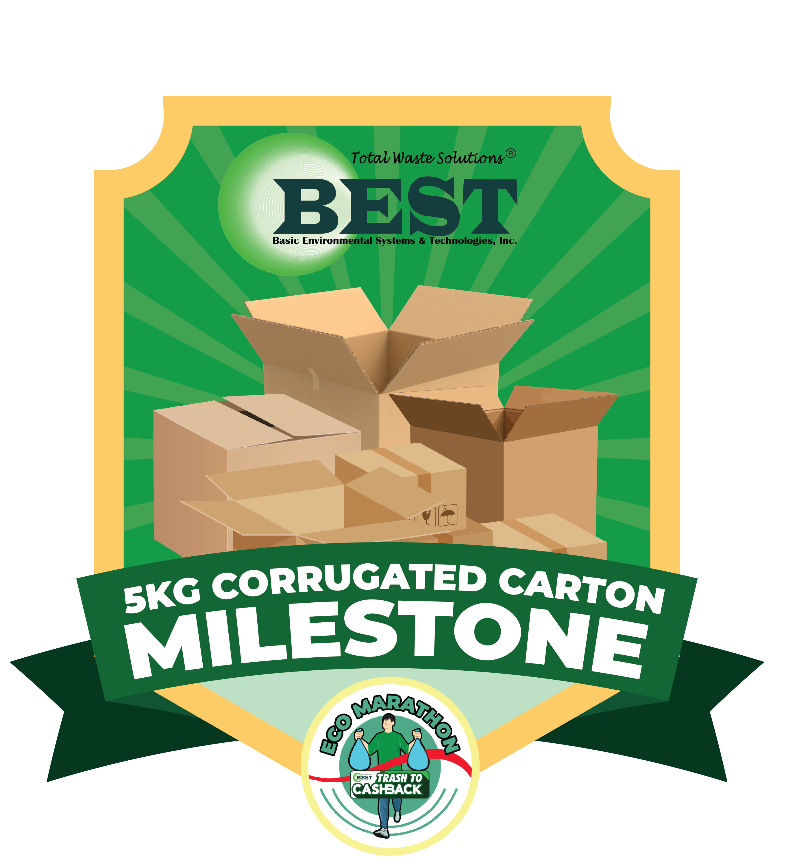 Makakakuha ka ng isang digital badge para sa milestone na ‘to! Kailangan mag-submit ng limang (5) kilong CORRUGATED CARTONS. Kapag nakolekta na ang lahat ng limang (5) digital badges sa loob ng dalawang lingo, makakatanggap ka n TTCB card bilang iyong ticket para sumali sa 1,000 KG PET Challenge! May chance kang manalo ng ASUS Vivobook Go! Bawat milestone ay dapat kumpletuhin nang buo sa lugar na ito lamang. Ang pag-submit ng parehong recyclable sub type sa ibang MBE-C location ay hindi pagsasama-samahin o itatala.